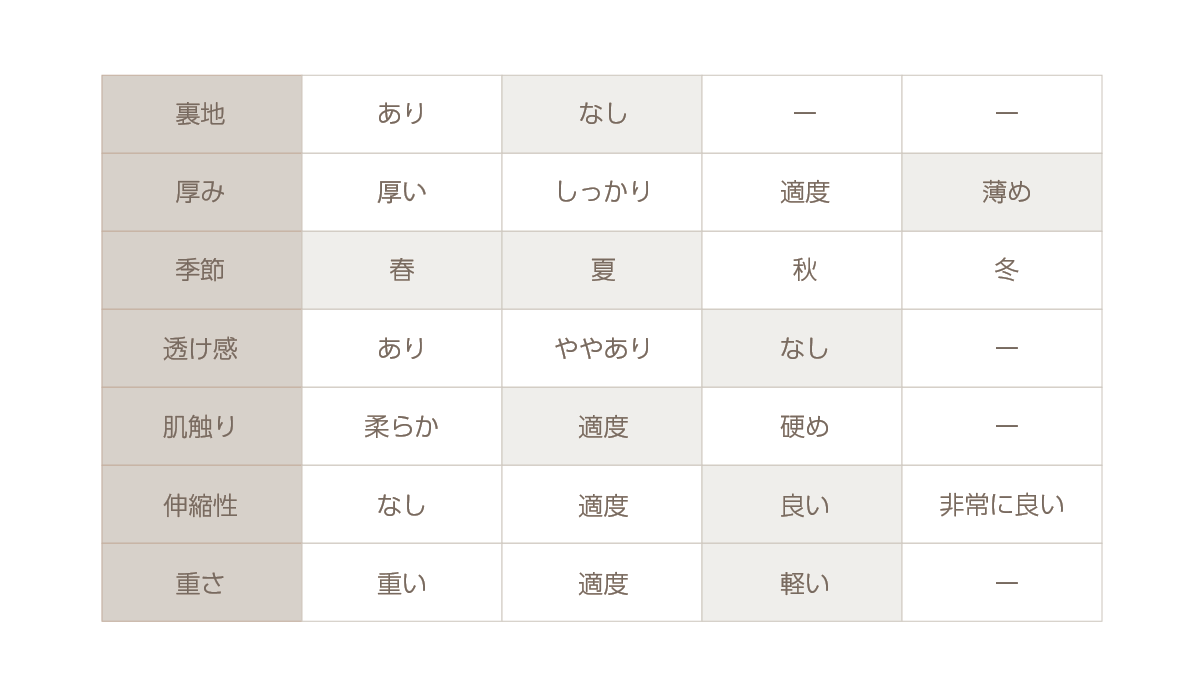 | 7:スリット丈 | 8 | 8 | 8 |